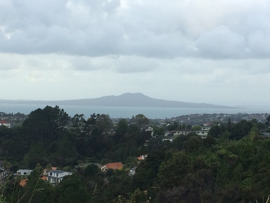In the suburb of Torbay Heights, I got my first view on the trail of an icon of Auckland, city of volcanic cones – Rangitoto Island: