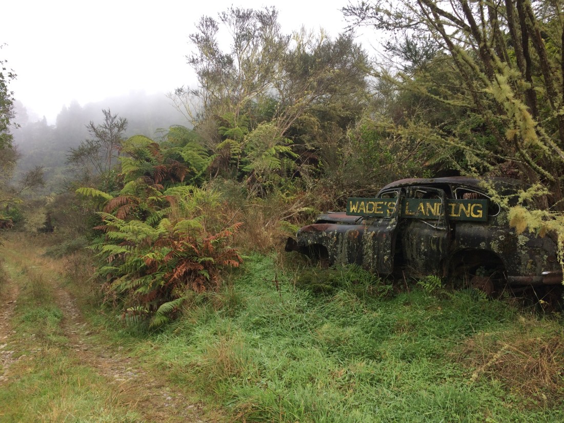 In the days when paddle steamers took settlers and travellers up and down the river, the Whakahoro port was known as Wade’s Landing. Here’s the remains of it – an old car being absorbed back into the land.
