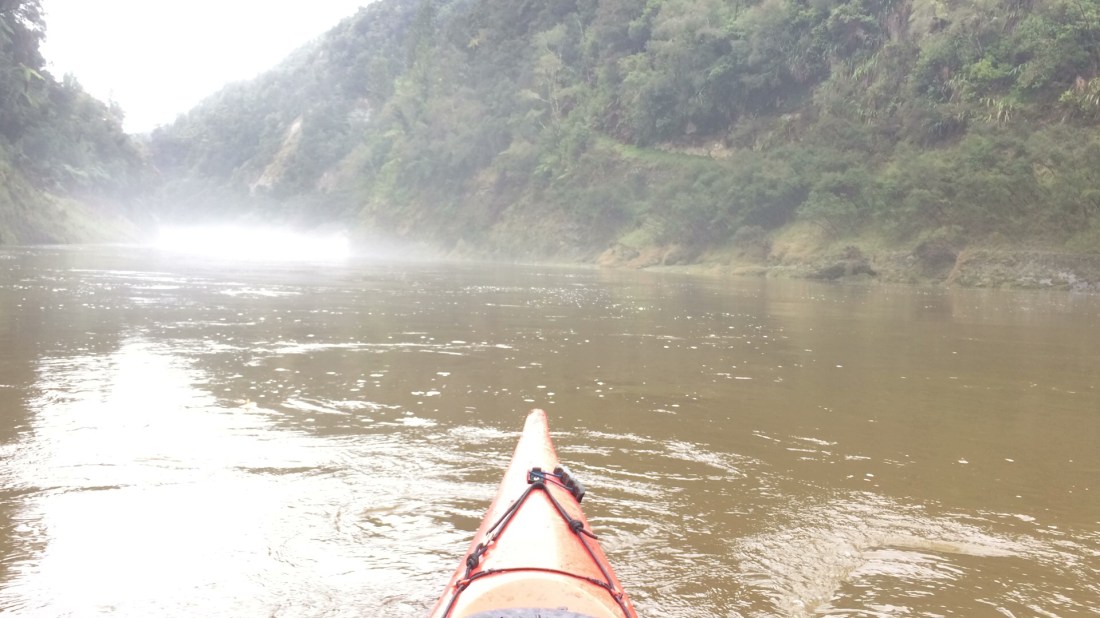 But in around 1200kms of solo travelling down the motu from Cape Rēinga to this point, I’d never had such a feeling of vulnerability as I did that morning. It’s one thing to stride out alone down a track on your own feet, carrying a pack; it’s another to load everything into a little boat, then launch out onto an unfamiliar, isolated, quietly boiling river.