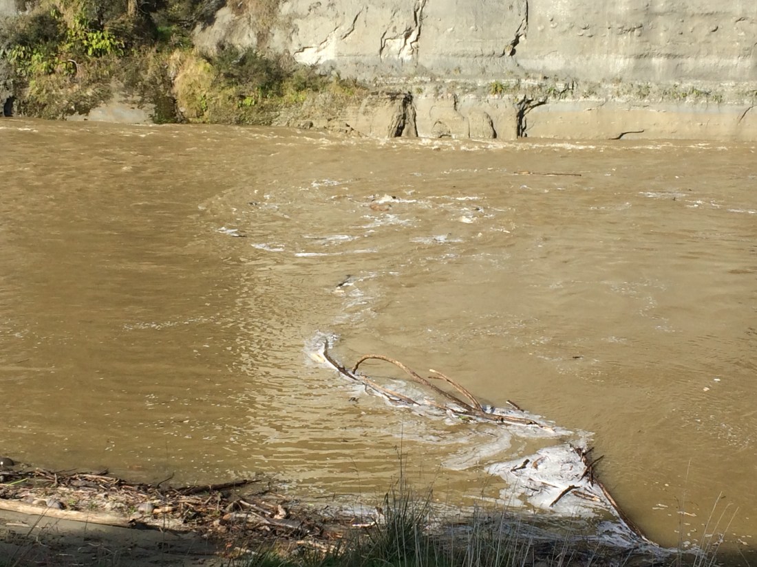 Paddling hard for the right-hand shore, I realised there was a large whirlpool right across the river, circling from the cliff over toward the campground, then back around. Massive, powerful whirlpools were once notorious on the Whanganui – there are early accounts of them spinning large waka and even steam-boats. Some of the slips that created them have since been dynamited. But with the recent rain, it was impossible to know how dangerous this one would be. I dug my paddle blade deep.