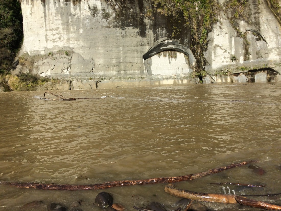 I was relieved: it would have been an awkward if it hadn’t been. There are no foot-tracks from this point in any direction except back the way I’d come; the river bank is impassable, sheer cliffs dropping into the river from virgin bush. The only cell phone reception anywhere around was Mangapurua Trig, 24km behind me; I would have probably just had to sit tight until the jet boat showed up.