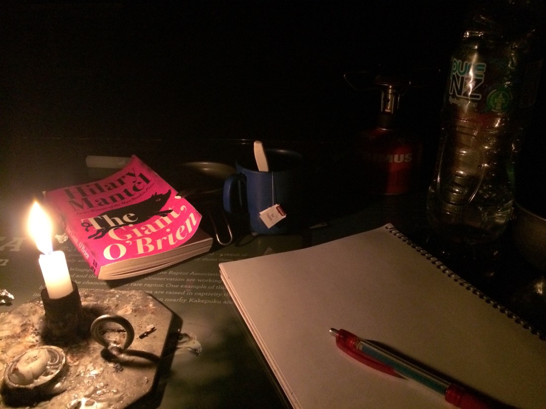 I had most of the afternoon to rest up and get ready for a big few days, weather permitting. I sat at the hut table wearing all my clothes except my rain jacket, in my sleeping bag, and read my novel.