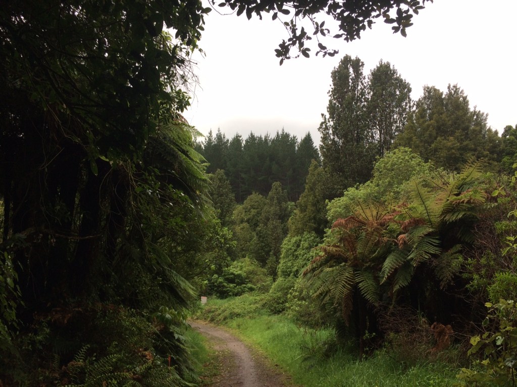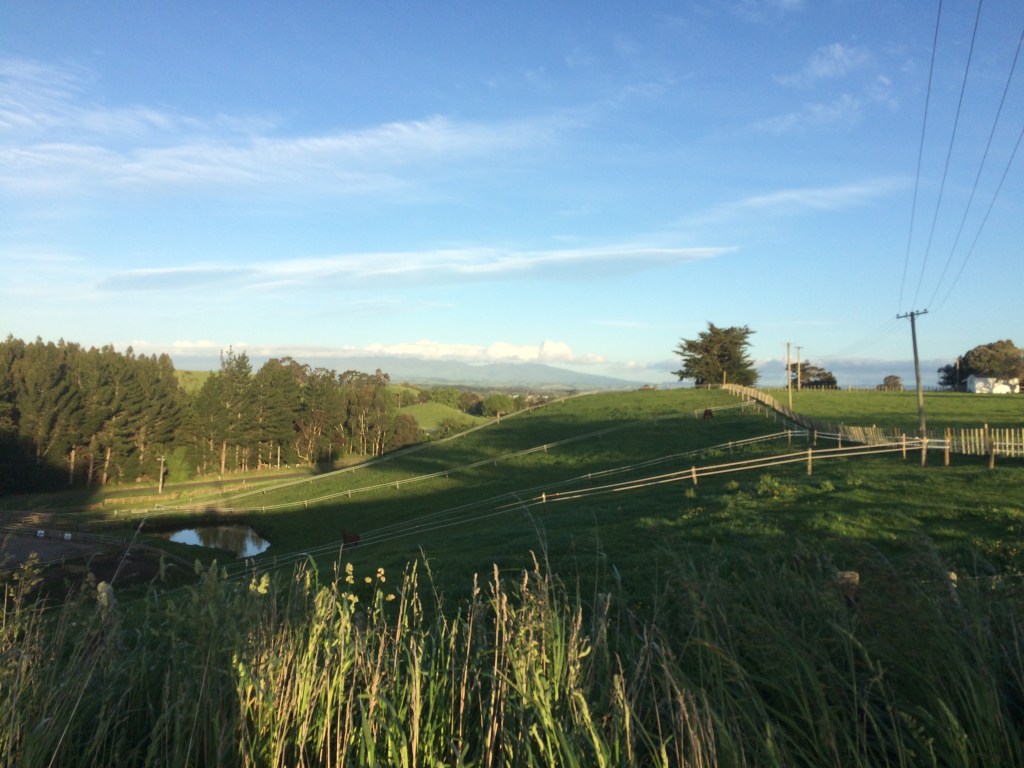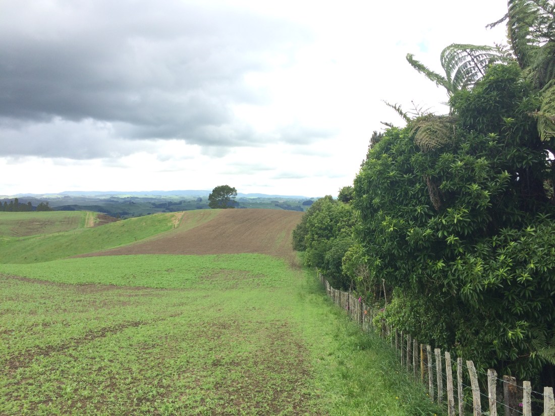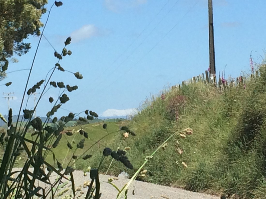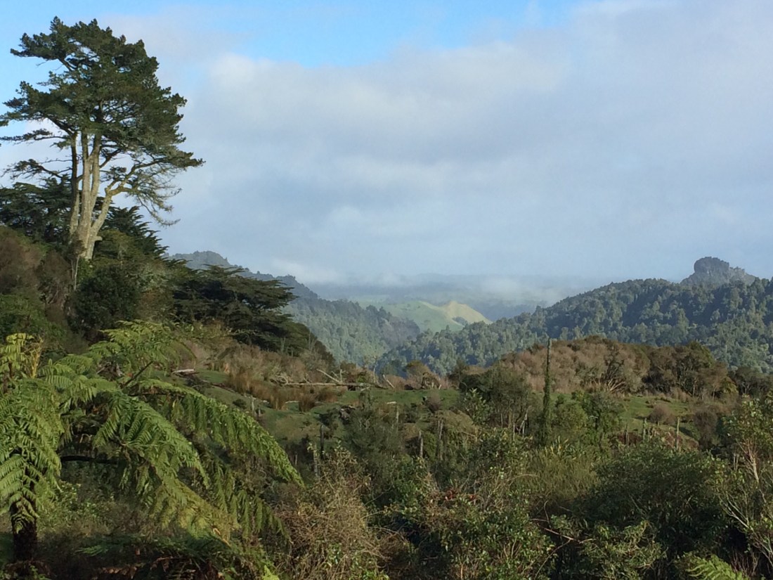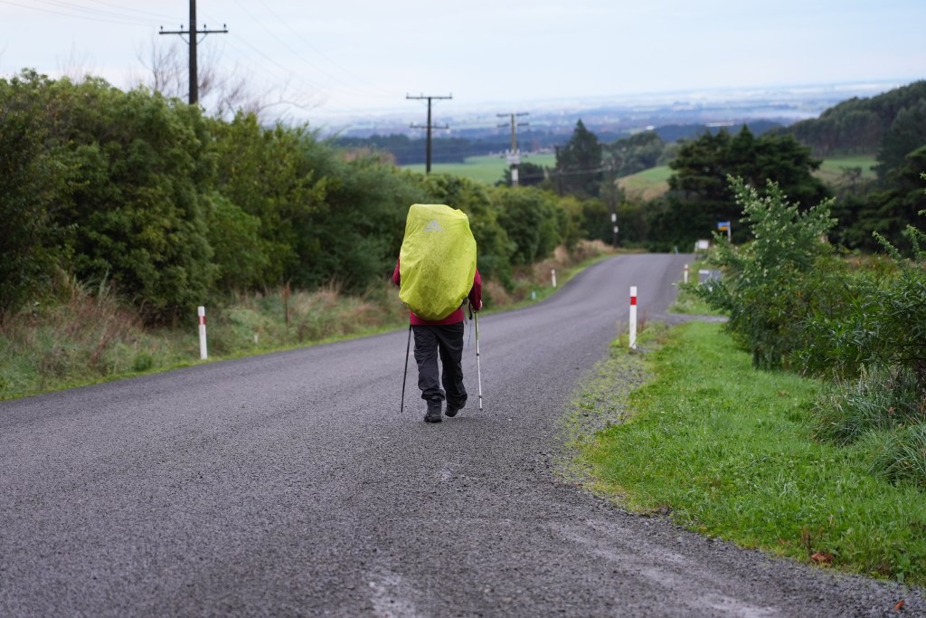 From Brookby it’s a short road trek to some paddocks. Then you have a steep climb up Kimpton’s Track onto a low range, covered mostly in pines. From the top, there’s a satisfying view north of massive, sprawling Auckland, which I had just walked across on my two feet.