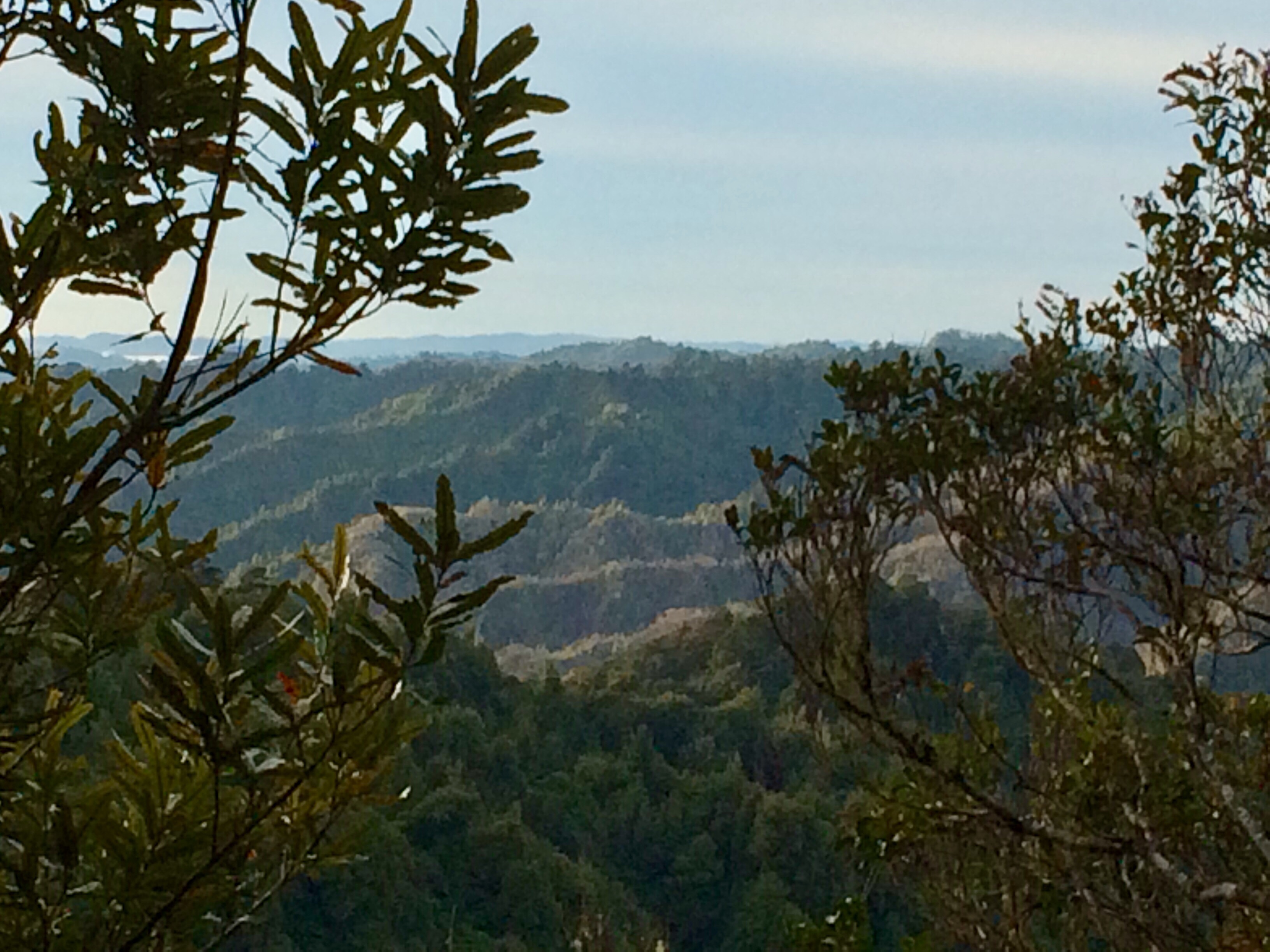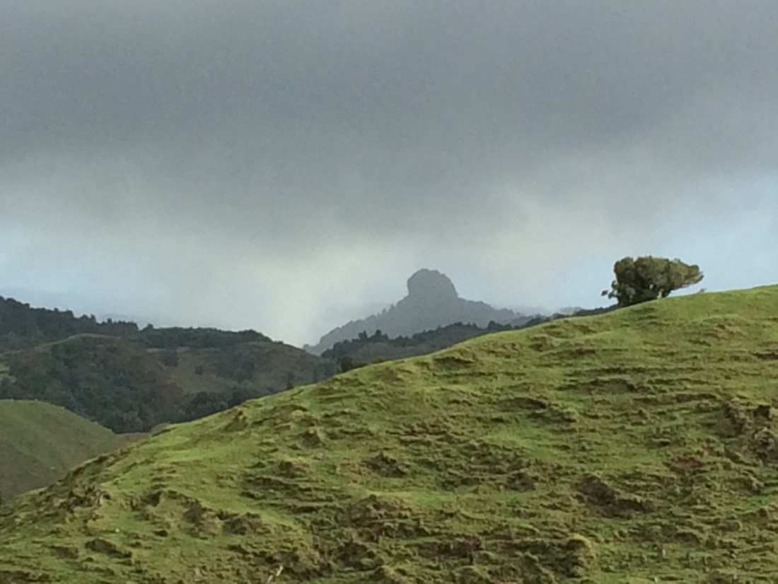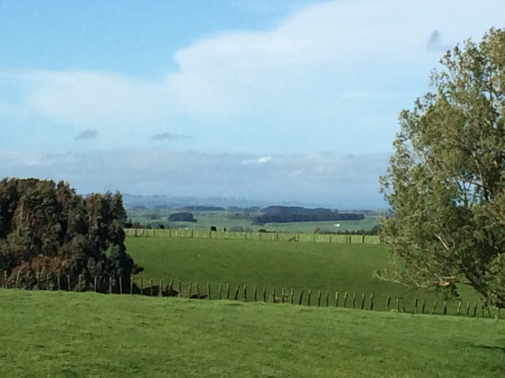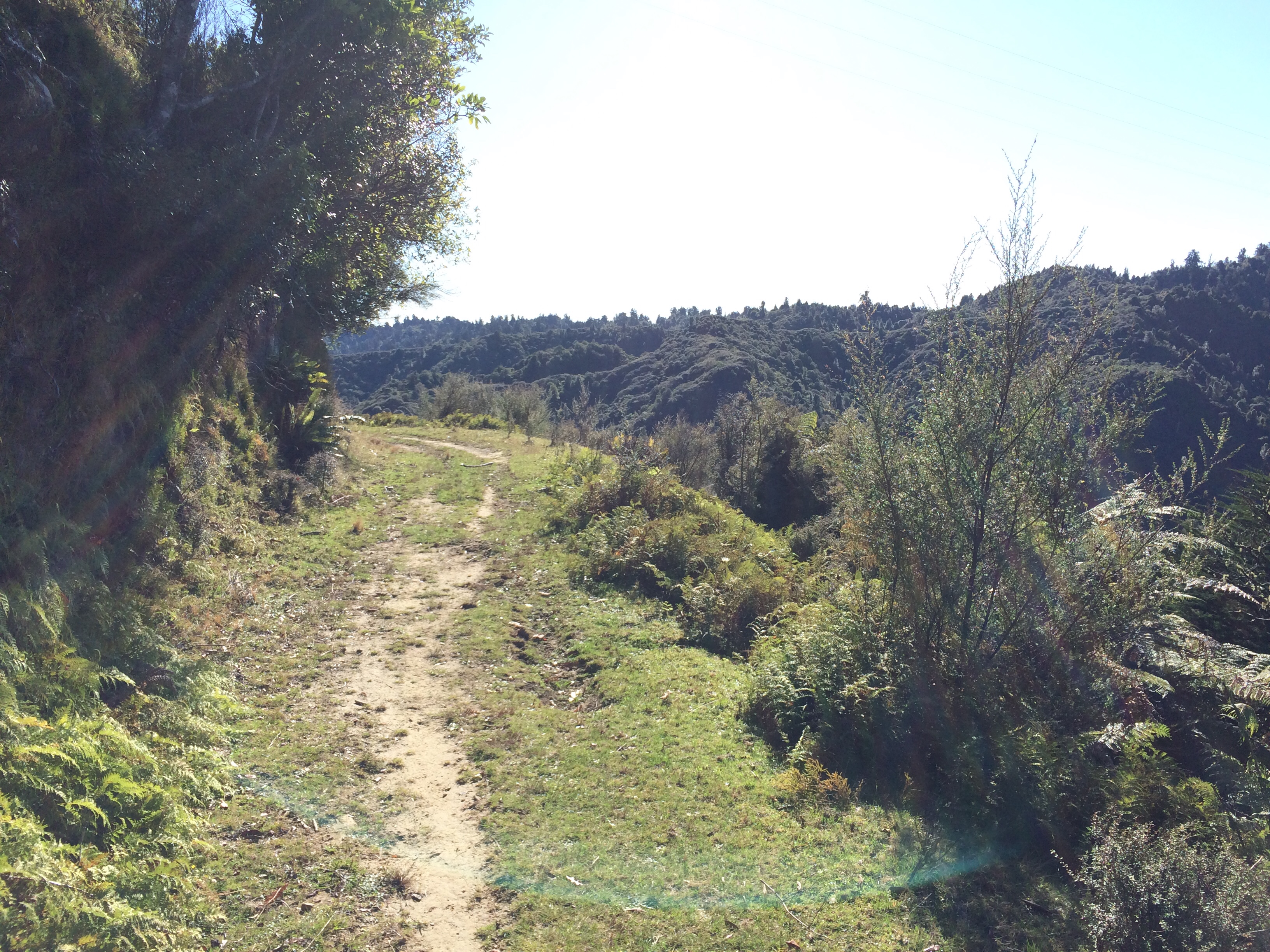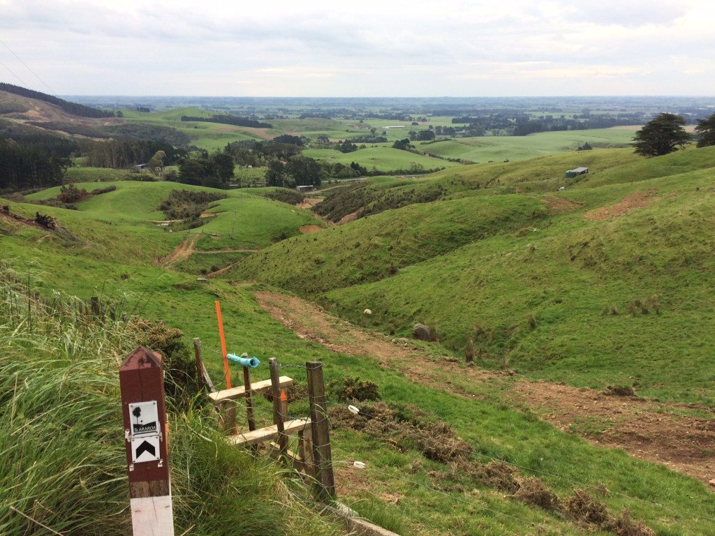 From Brookby it’s a short road trek to some paddocks. Then you have a steep climb up Kimpton’s Track onto a low range, covered mostly in pines. From the top, there’s a satisfying view north of massive, sprawling Auckland, which I had just walked across on my two feet.