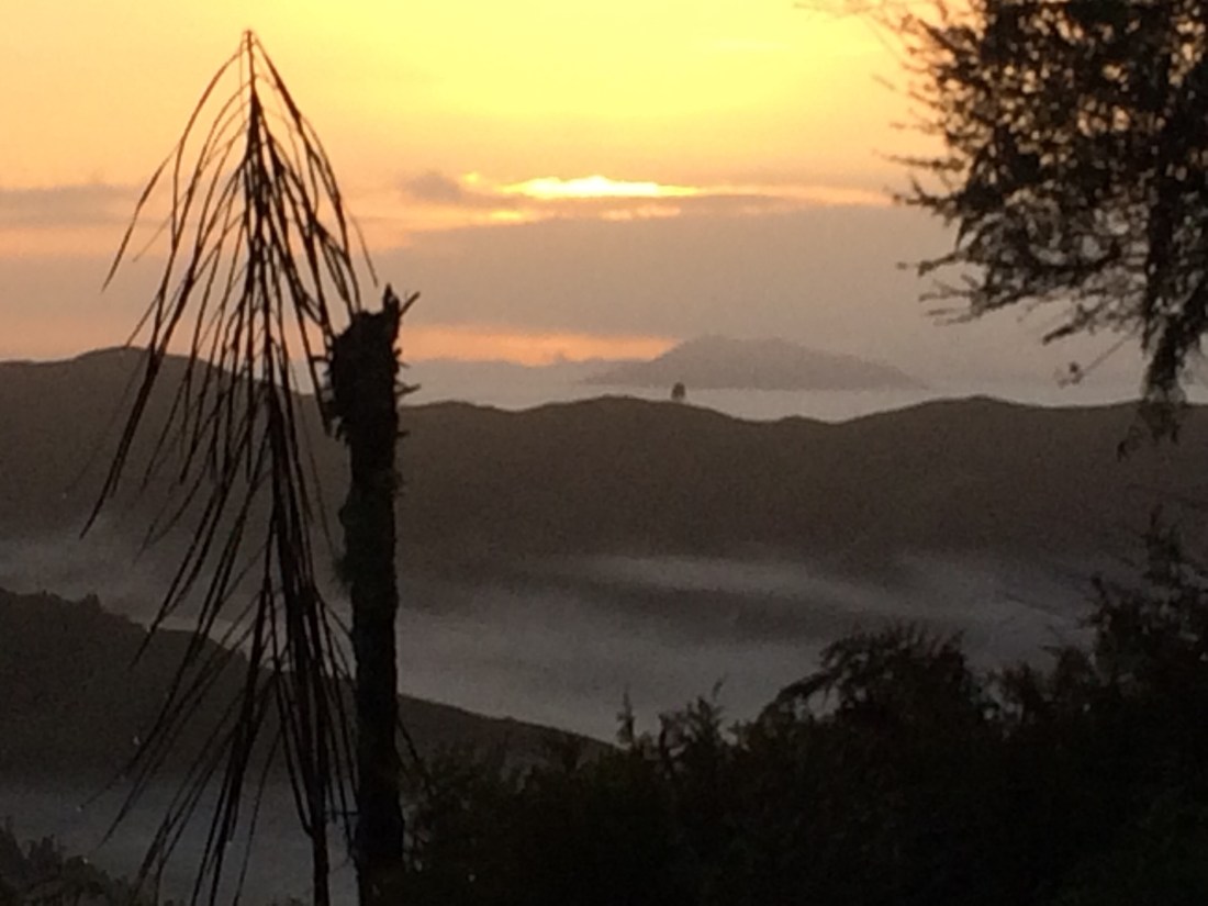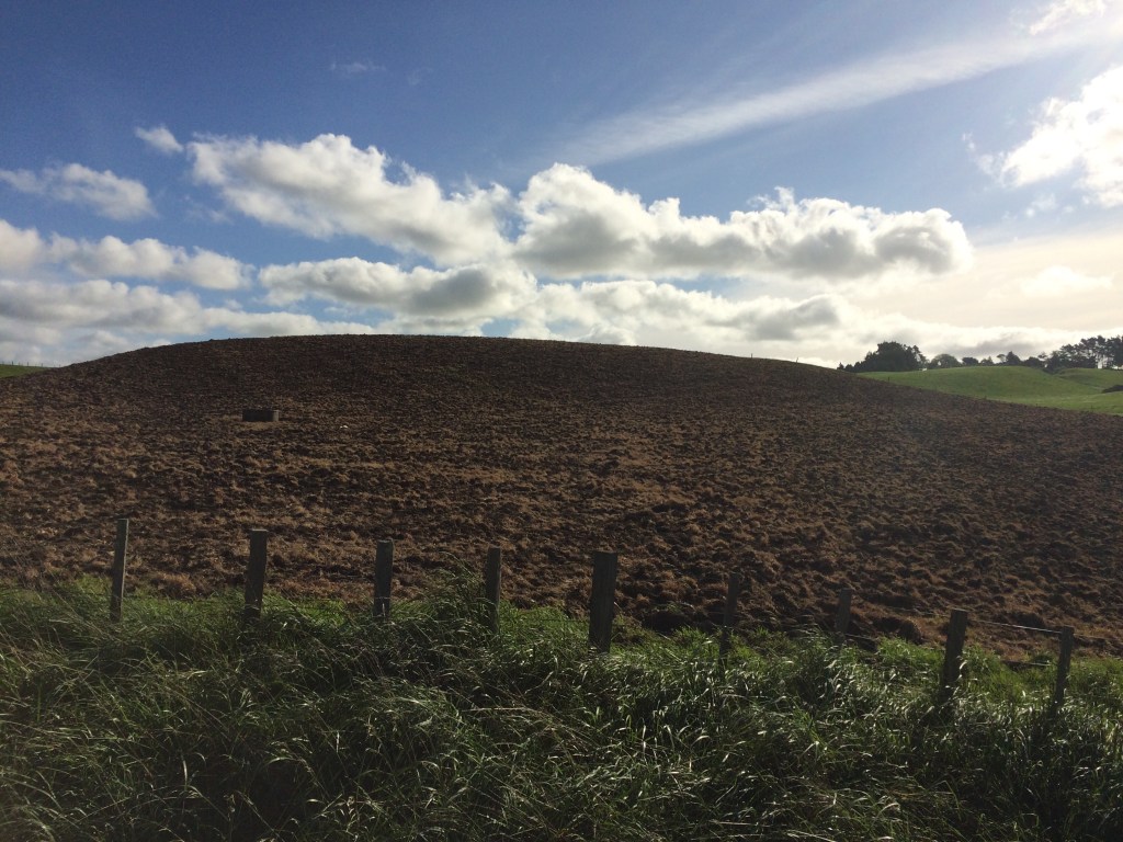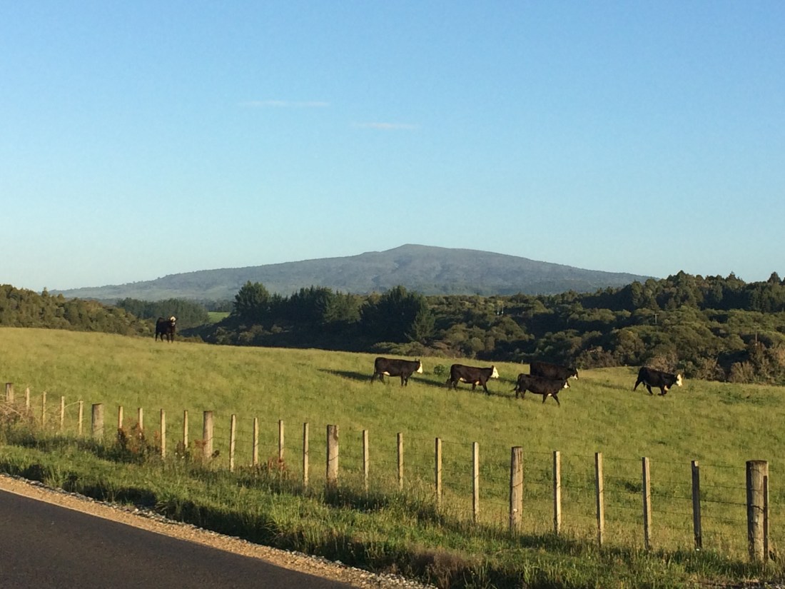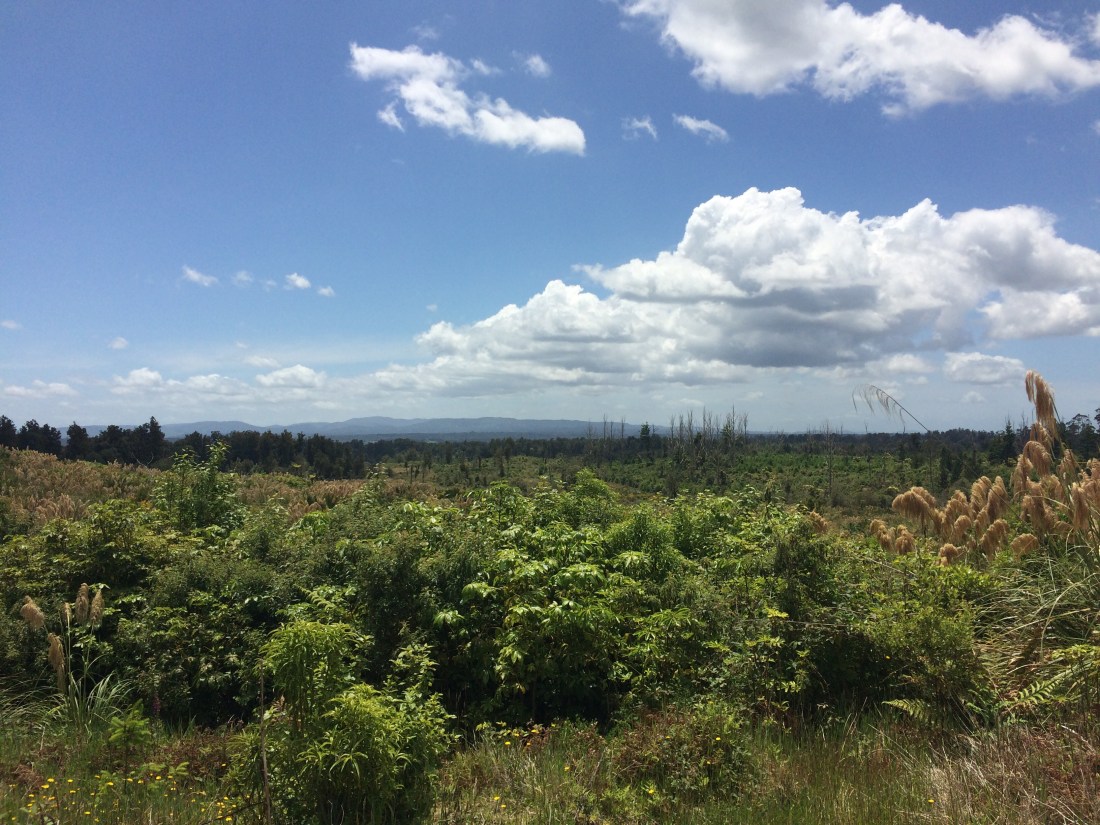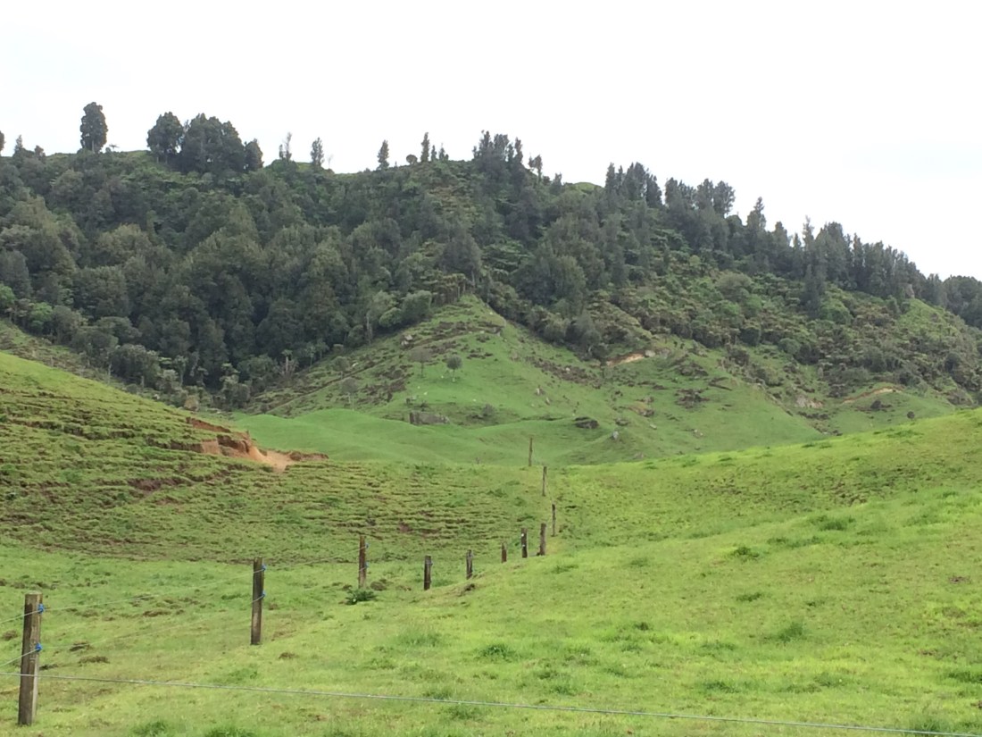 From Brookby it’s a short road trek to some paddocks. Then you have a steep climb up Kimpton’s Track onto a low range, covered mostly in pines. From the top, there’s a satisfying view north of massive, sprawling Auckland, which I had just walked across on my two feet.