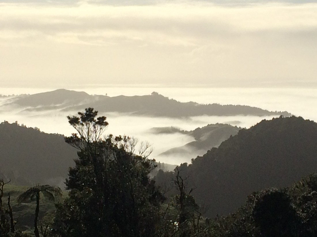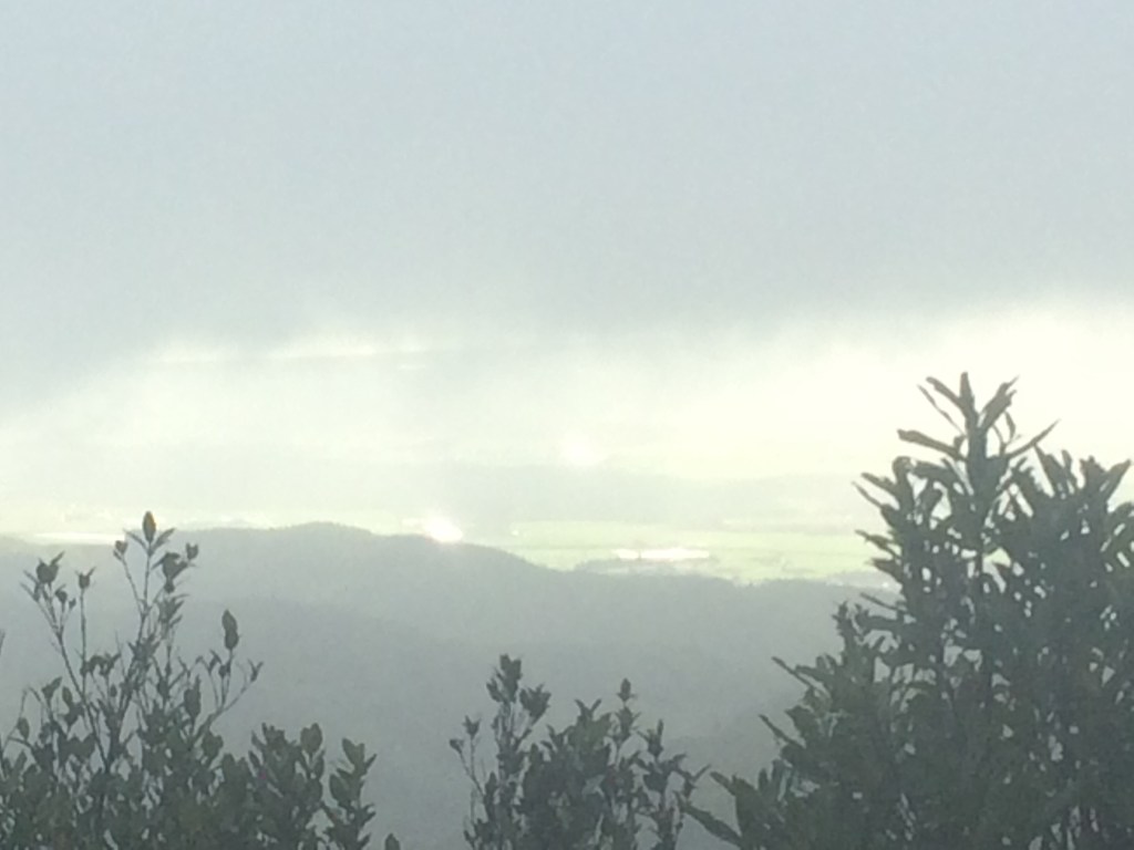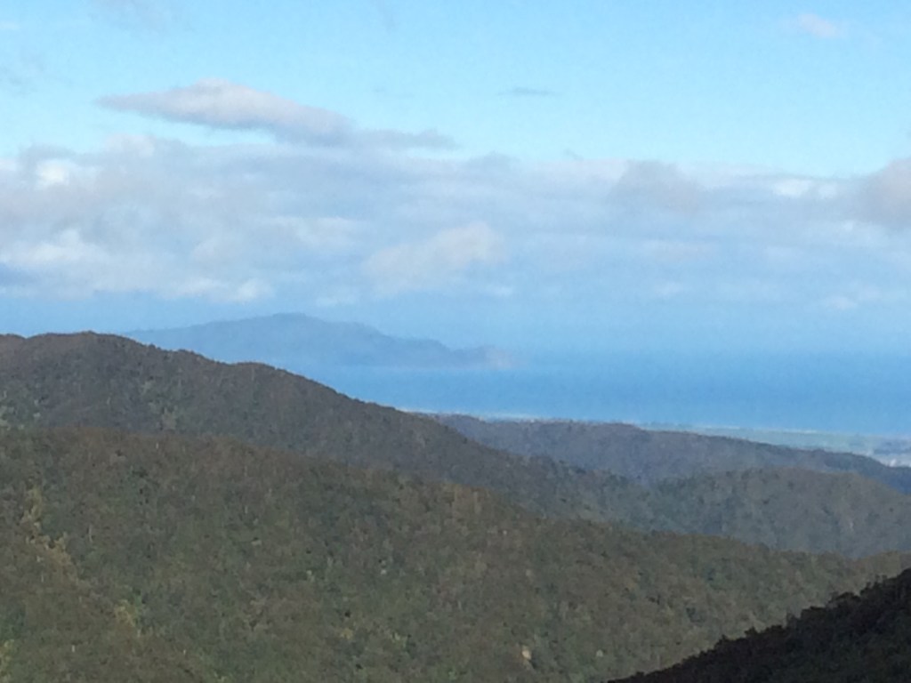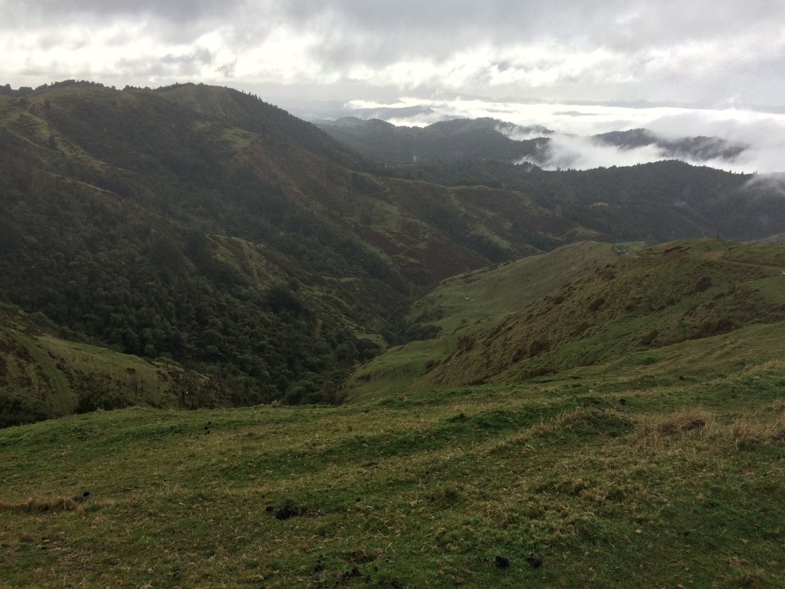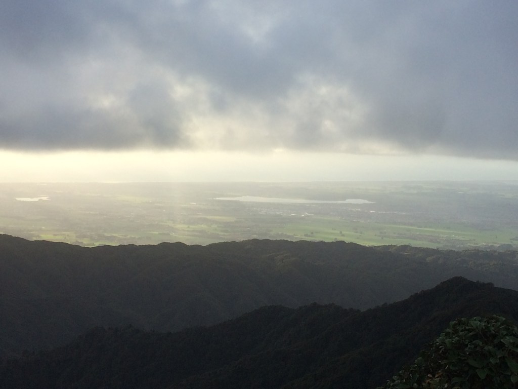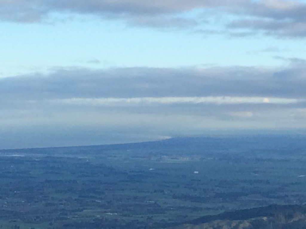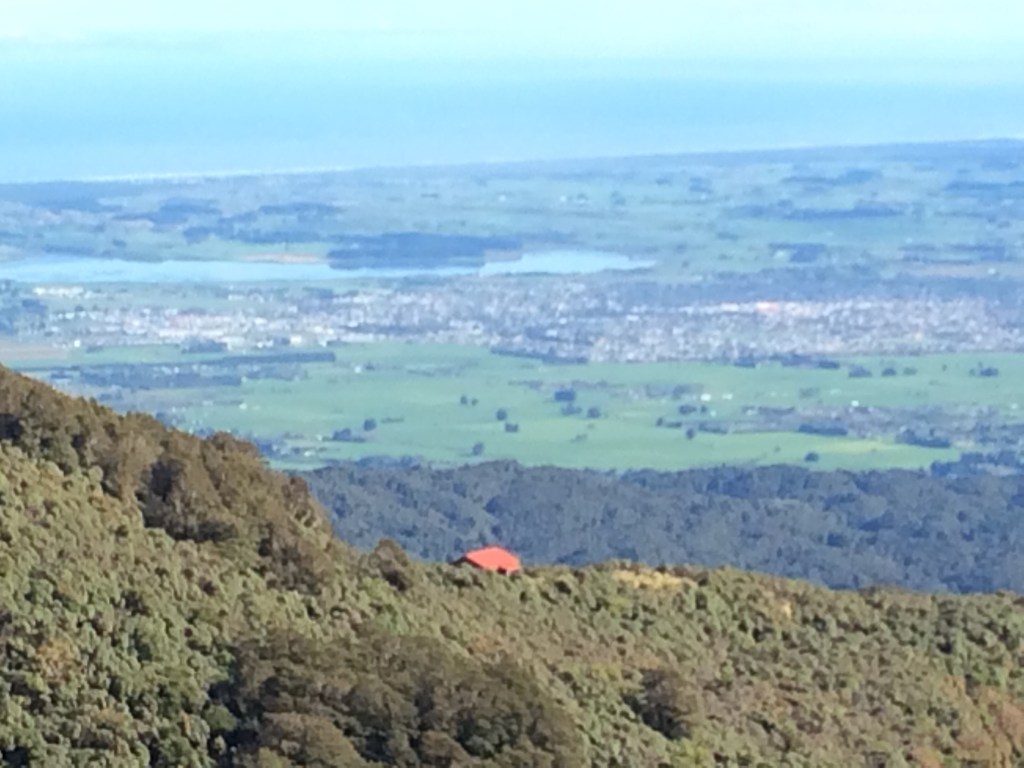 Here’s a fuzzy view back to Waiopehu Hut, with Levin and the coast in the background.