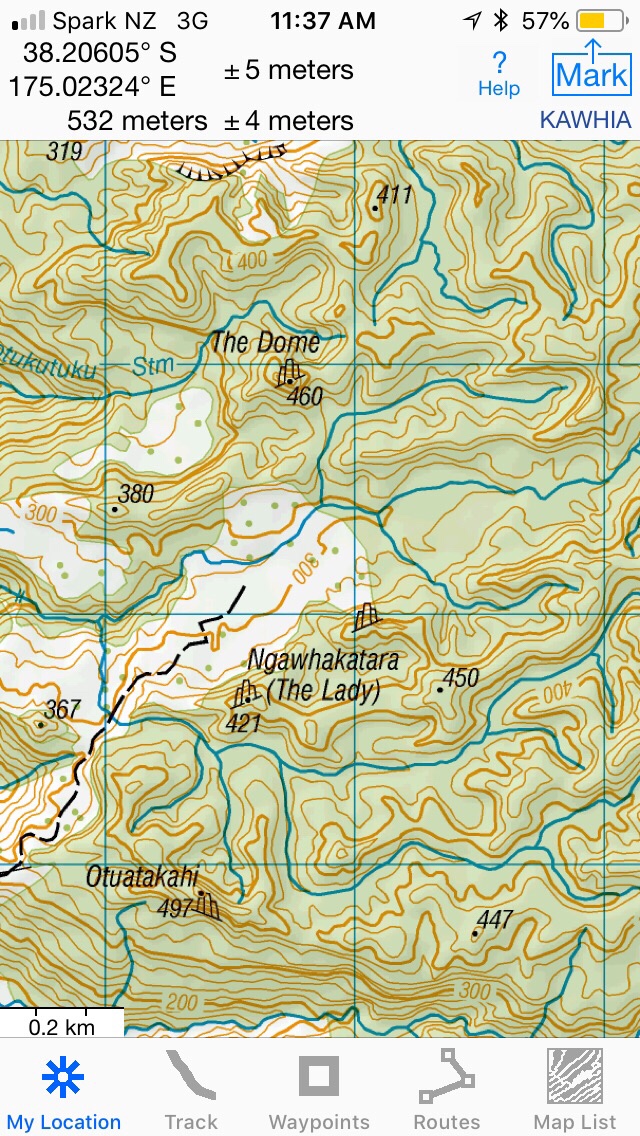 (The Waiopehu track used to be the Te Araroa route. It was changed to this shorter, steeper way, cutting out Waipoehu and going direct to Te Matawai, presumably because it’s a quicker way up onto the main north-south ridge.)