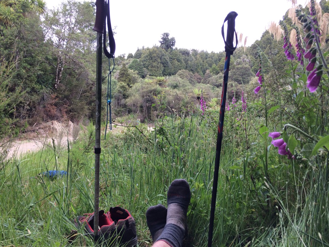 So that’s what I decided. The next morning I spent recovering and writing in the empty communal room at Makahika, watcing the rain sluice down the big windows. In the afternoon the sun came out and I helped some of the centre workers clean out a shed; John had asked one of them to give me a lift back into Levin on his way home that afternoon.