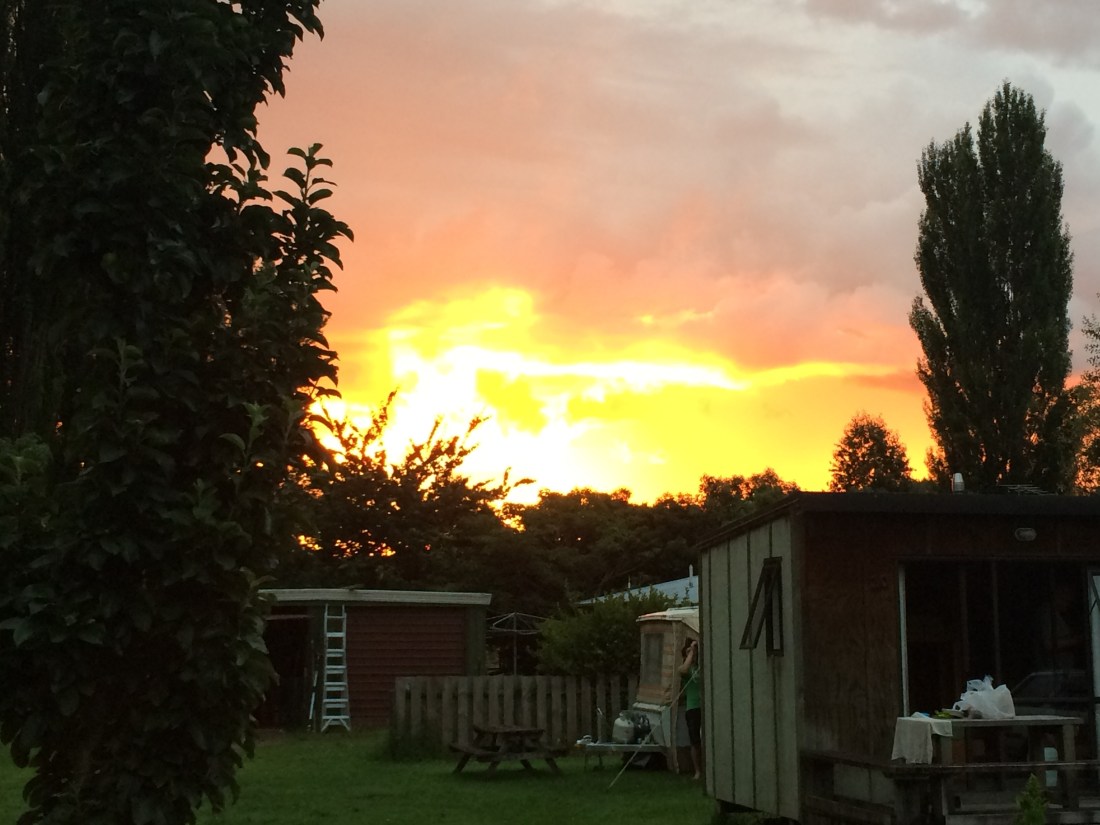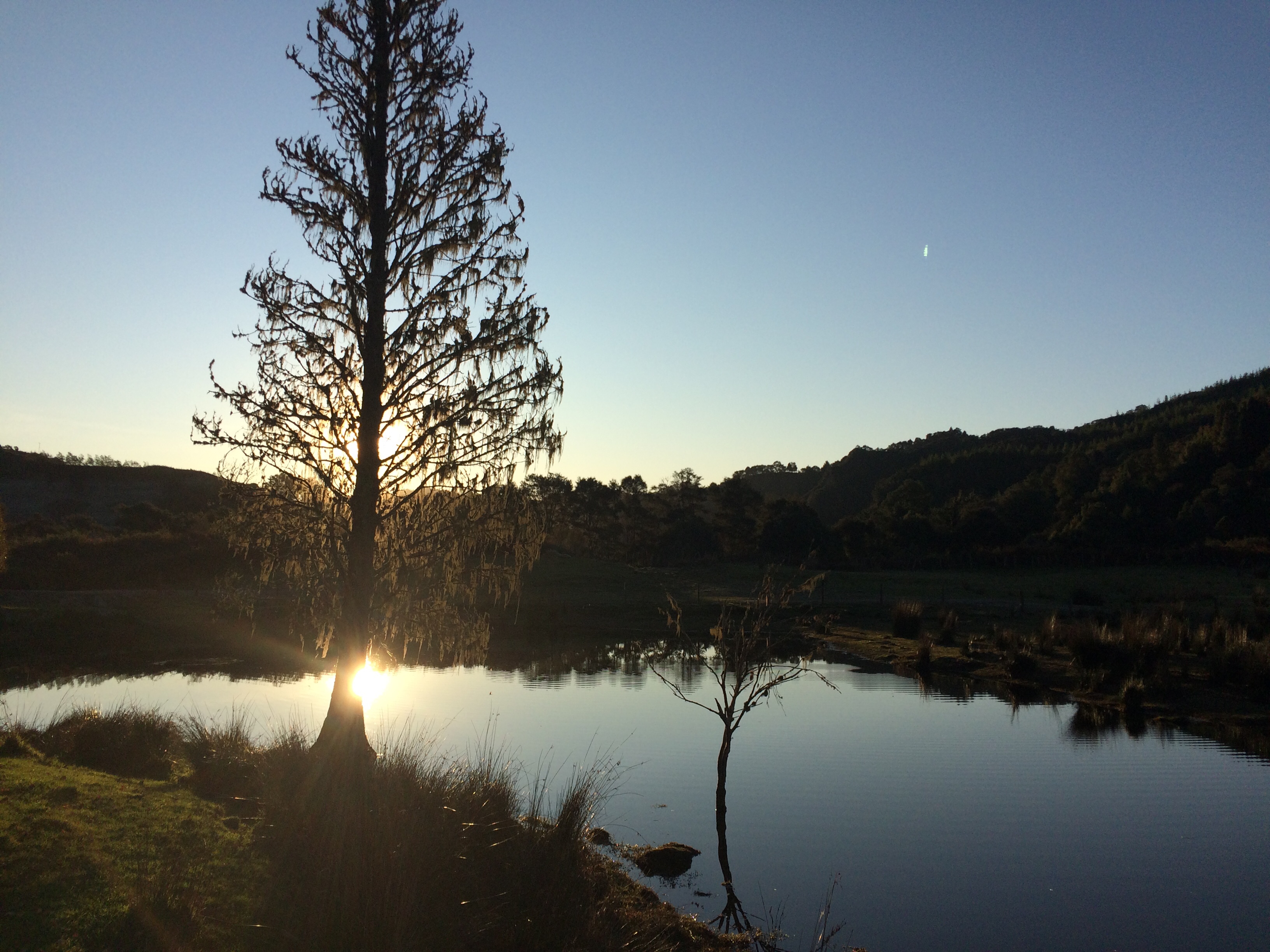 Then it’s a long, tired 8.5kms along the stop bank into Rangiriri. On the way, the sunset:
