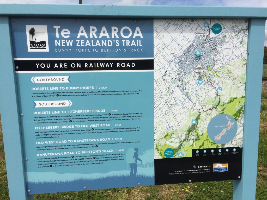 Nearby, signage for the Te Araroa trail talks of the Waikato iwi whose land you walk through, and the mythical taniwha, water creatures who inhabit the river and interact in endlessly surprising ways with humans. There’s also an exhortation to trampers, which sums up what that day on the trail had been like for me, especially the start of it, in Rangiriri: