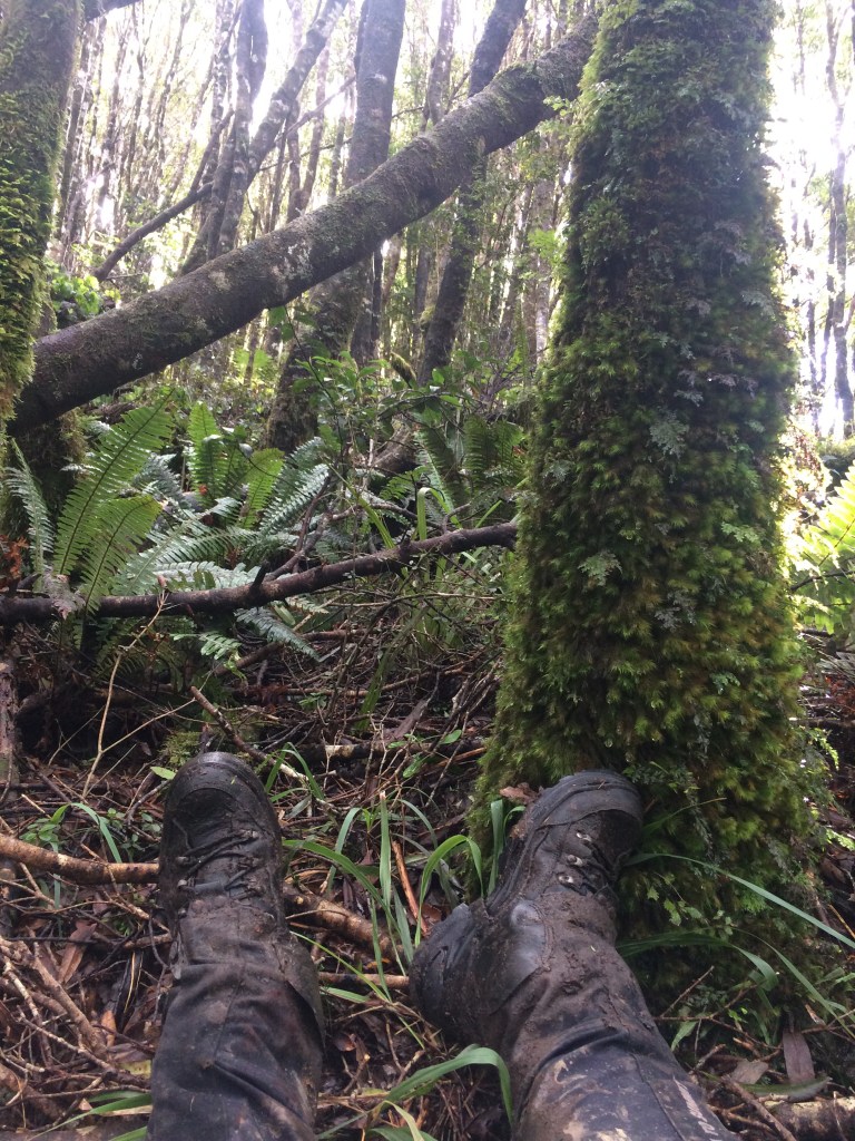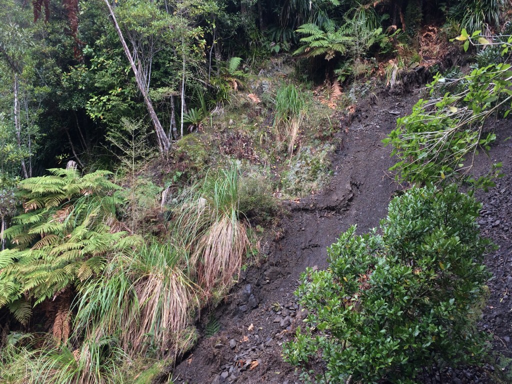 I met a group of three teenage boys and an older man, coming the other way, carrying rifles. They told me to watch out for a big slip three kilometres up the route I would be taking in the morning.