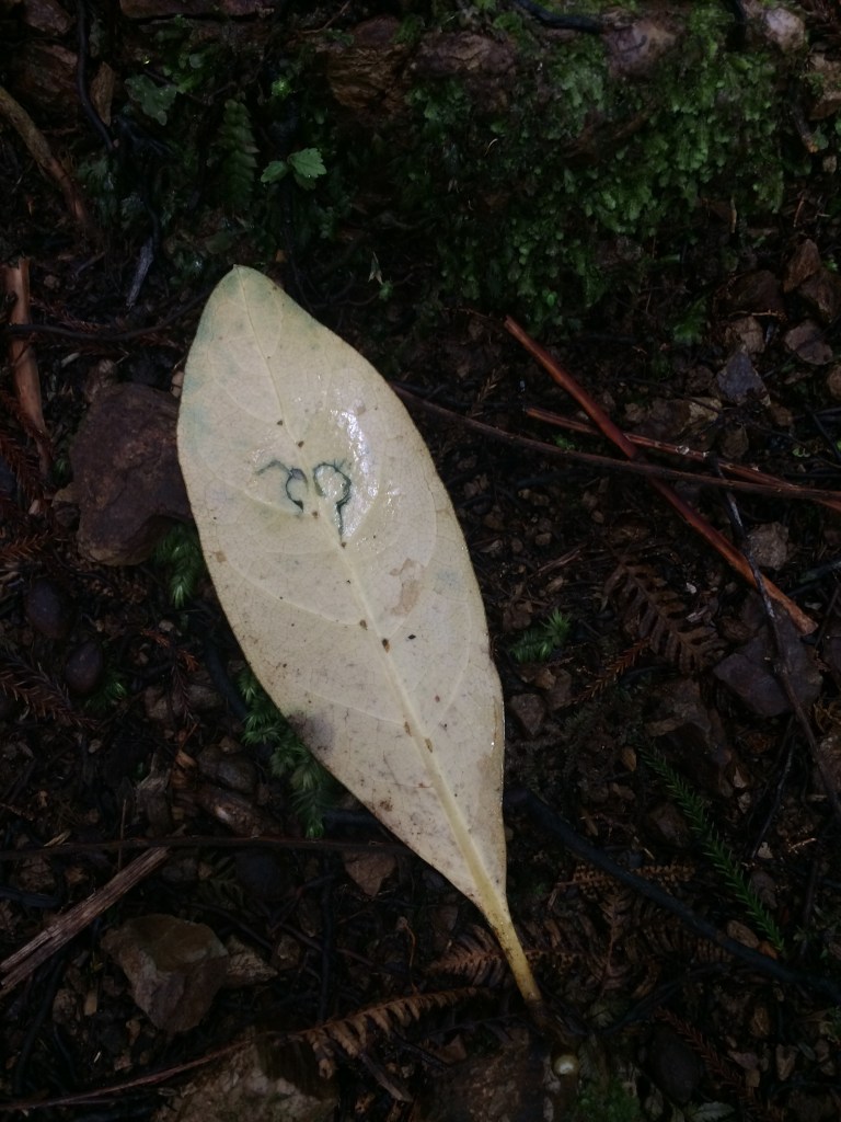 I started noticing small paterns on the white underside of certain fallen leaves. Some sort of burrowing insect seemed to have a penchant for feeding in swirls, spirals and circles. On this one, I detected the sketch of a heart. That cheered me up too.